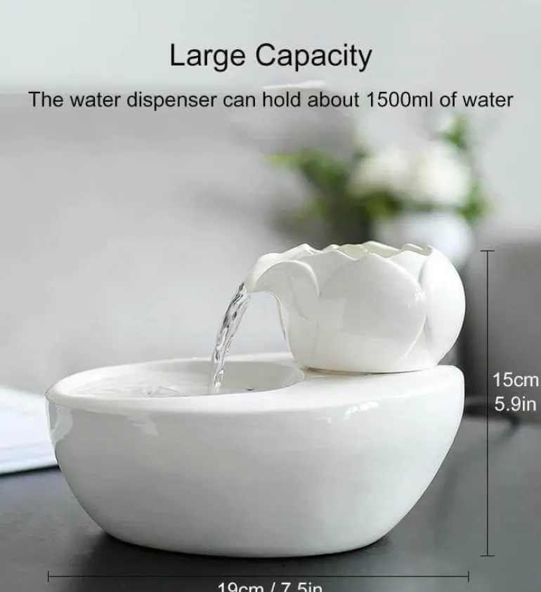Dieser Wassernapf aus umweltfreundlicher Keramik ist sicher für Ihre Katze und wertet mit seinem eleganten Design Ihre Wohnung auf. Der Spender recycelt kontinuierlich Wasser und sorgt so für eine frische und einladende Quelle, die Ihr Haustier dazu anregt, mehr zu trinken und ausreichend Flüssigkeit zu sich zu nehmen.