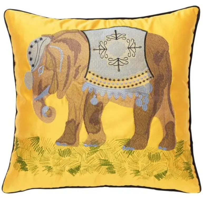 Verschönern Sie Ihr Wohnzimmer mit unseren wunderschön gestalteten Kissenbezügen mit Elefantenstickerei. Diese dekorativen Kissen aus 100 % Seide präsentieren ein bezauberndes Elefantenmotiv, das mühelos Charme und Eleganz vereint und die Gesamtästhetik Ihres Raumes unterstreicht.