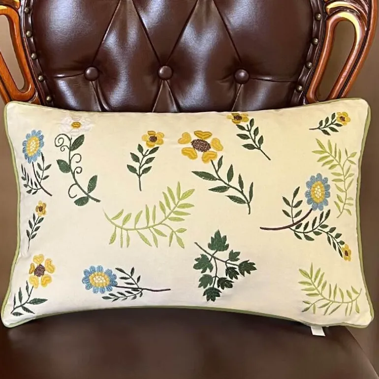 Entdecken Sie die perfekte Balance aus Funktionalität und Stil mit unserem wunderschön gearbeiteten Kissenbezug aus Baumwolle mit Blattstickerei. Dieser dekorative Kissenbezug besticht durch seine Retro-Eleganz, die die ländliche Ästhetik unterstreicht und ihn zur idealen Ergänzung macht, um den Charme jedes Wohnraums zu unterstreichen.