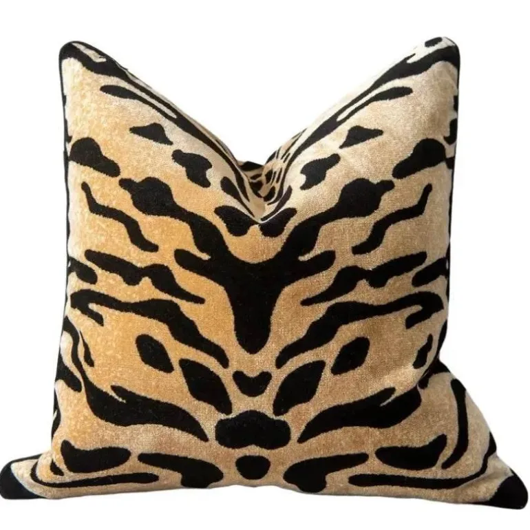 Verleihen Sie Ihrem Raum mit dem Kissenbezug aus beflocktem Samt mit Tigermuster einen Hauch wilder Eleganz. Dieser quadratische Kissenbezug aus weichem, plüschigem Samt besticht durch sein aufwendiges Leoparden- und Streifenmuster und verbindet Luxus mit Stil.