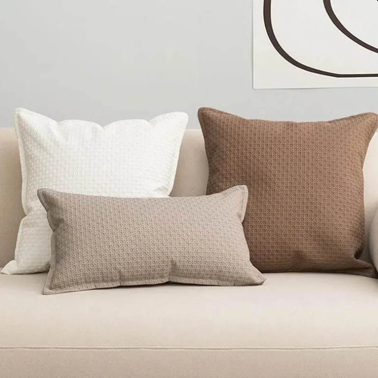 Der quadratische Kissenbezug misst 45 x 45 cm und besticht durch sein solides Design, das Beige-, Elfenbein- und Brauntöne nahtlos in sich vereint und den Charme Ihres Sofas oder Sessels unterstreicht. Seine sorgfältig gewebte Textur verleiht ihm ein einzigartiges Element und macht ihn zu einer stilvollen Ergänzung Ihrer Wohnkultur.
