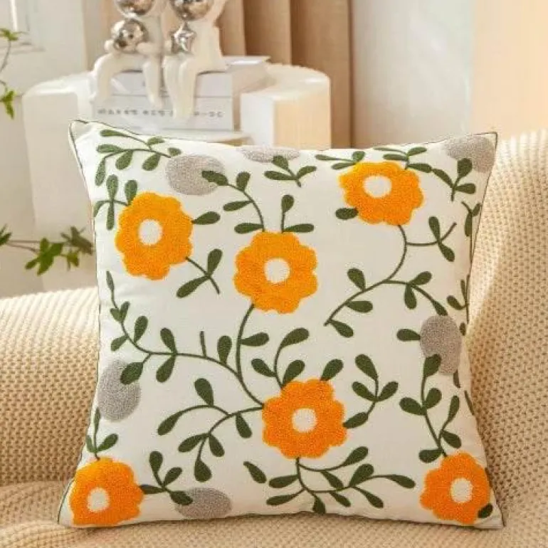 Dieser Kissenbezug mit Blumenstickerei ist ideal für alle, die die Schönheit der Natur schätzen. Er bringt ländlichen Charme in Ihr Zuhause. Dank seiner vielseitigen Größe passt er perfekt in viele Umgebungen – egal, ob Sie Ihr Wohnzimmer auffrischen, einen Geschäftsraum dekorieren oder dem Innenraum Ihres Fahrzeugs ein stilvolles Update verpassen möchten. Die getuftete Sticktechnik erzeugt eine reiche Textur, die die Gesamtästhetik des Kissenbezugs unterstreicht.