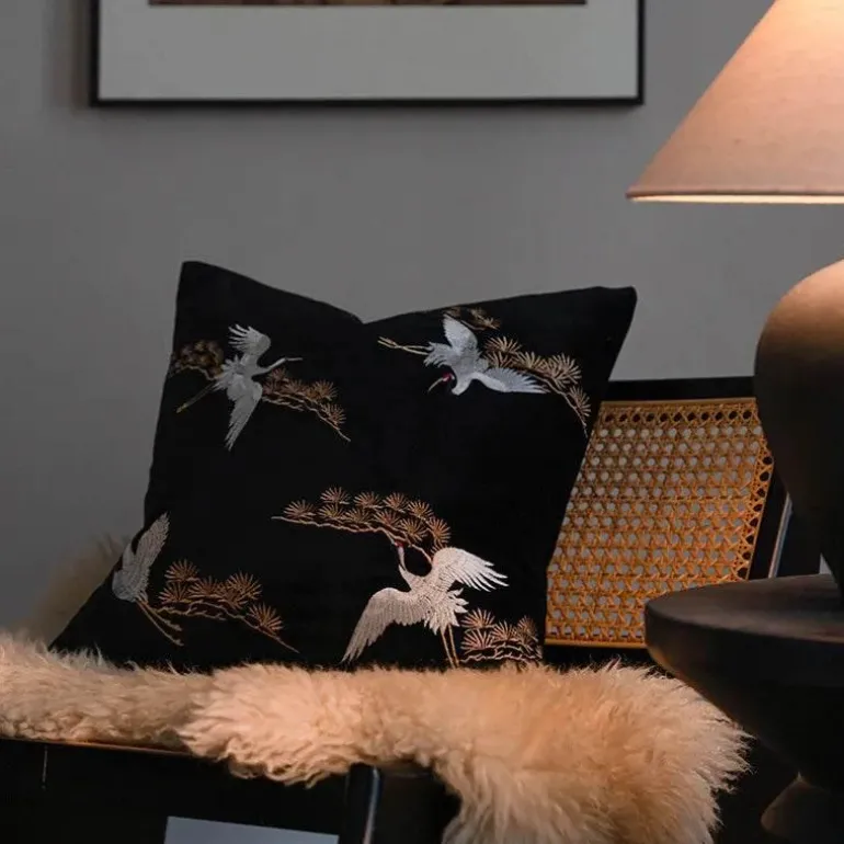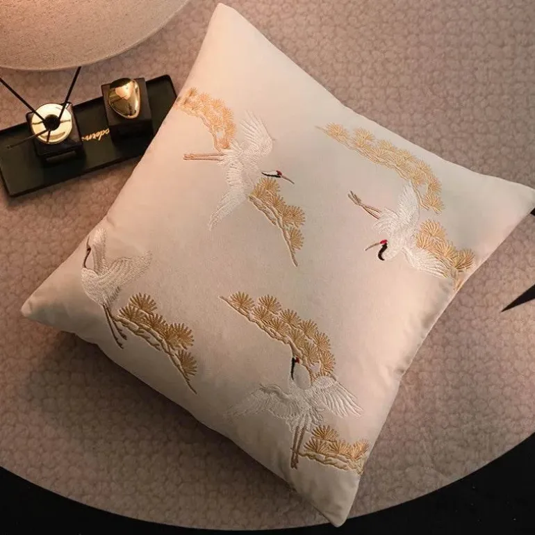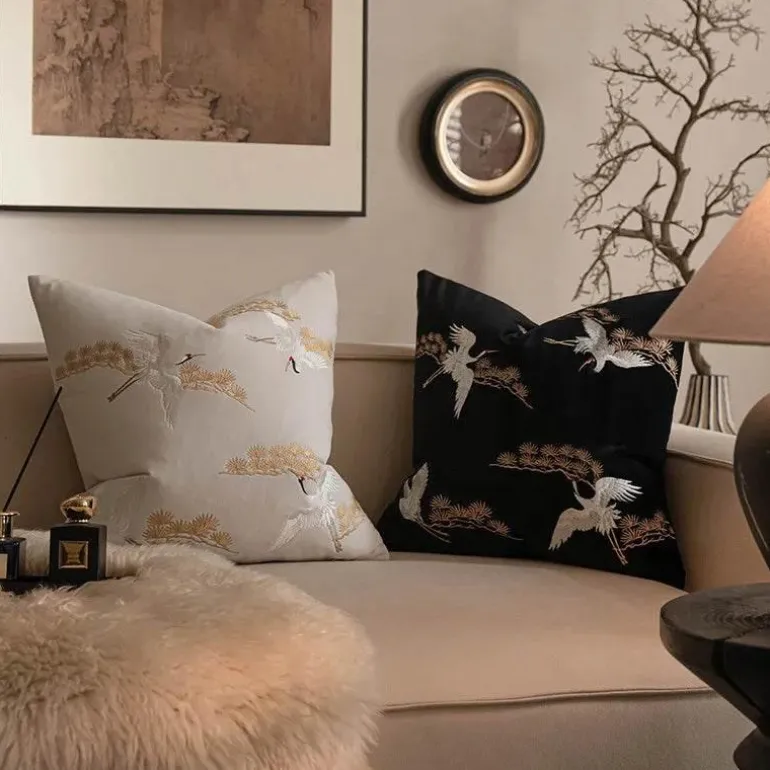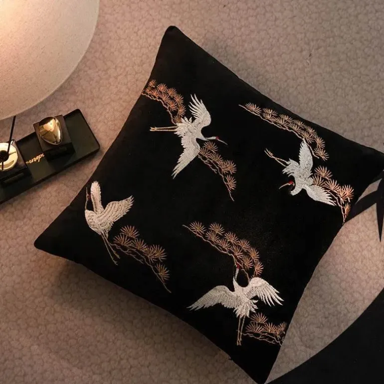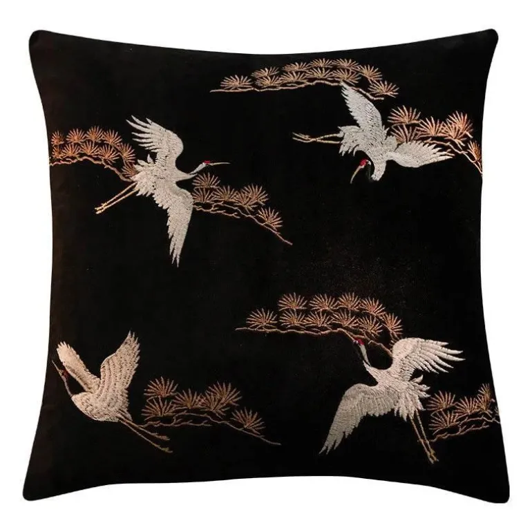Verleihen Sie Ihrem Zuhause mit dem bestickten Kissenbezug mit Kranichmotiv einen Hauch von Luxus. Mit seiner zeitlosen Optik und der hochwertigen Verarbeitung ist er eine unverzichtbare Ergänzung für alle, die ihre Inneneinrichtung aufwerten möchten.