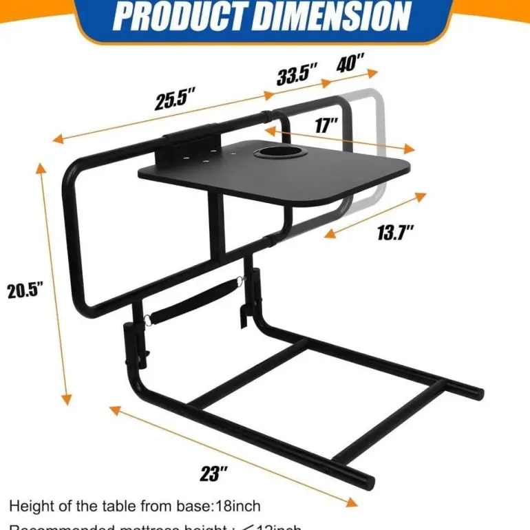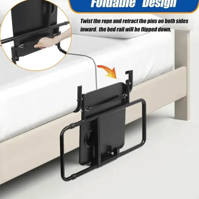 Mit einem vielseitigen, klappbaren Tisch, der sicher am Bettgitter befestigt ist, bietet dieses Produkt eine ideale Ablagefläche für Aktivitäten wie Essen, Arbeiten oder Lesen. Der Tisch verfügt über einen Getränkehalter und ist bis zu 10 kg belastbar. Dank verstärkter Metallstabilisatoren und einem breiteren Rahmen bietet dieses Bettgitter außergewöhnliche Stabilität und Sicherheit und ist bis zu 150 kg belastbar. Darüber hinaus lässt sich das Gitter bei Nichtgebrauch einfach zusammenklappen und verstauen und ist somit eine praktische Ergänzung für jedes Schlafzimmer.