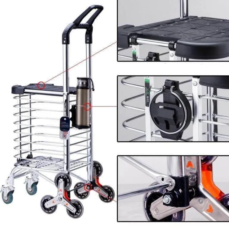 1 x leicht zu tragender Einkaufswagen mit Kletterrollen.