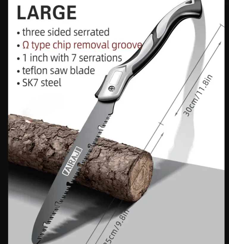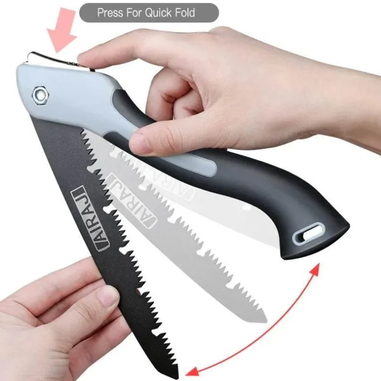 Entdecken Sie die Vielseitigkeit dieser tragbaren, zusammenklappbaren Handsäge – ein unverzichtbares Werkzeug für Holzbearbeitungs-, Camping- und Bastelbegeisterte. Die Säge ist sowohl tragbar als auch effizient und verfügt über ein scharfes, langlebiges Sägeblatt, das sich nahtlos in den Griff einklappen lässt und so die Aufbewahrung und den Transport erleichtert. Ob Sie Holzarbeiten durchführen oder Outdoor-Aktivitäten wie Camping genießen – diese Handsäge eignet sich perfekt zum Sägen von Holz, zum Entfernen von Ästen oder zum Sammeln von Brennholz. Dank ihres leichten Designs passt sie bequem in Ihre Werkzeugtasche oder Ihren Rucksack, sodass Sie für alle anfallenden Schneidarbeiten gerüstet sind.