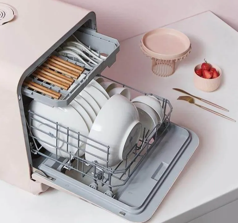 Erleben Sie müheloses Aufräumen in der Küche mit unserem kompakten automatischen Geschirrspüler, der für minimalistische Räume konzipiert ist. Dieses Tischgerät verfügt über ein abnehmbares Filtersieb, das das Herausfiltern von Rückständen vereinfacht und die Wartung erleichtert. Dank des transparenten Fensters können Sie den Spülvorgang jederzeit bequem überwachen.