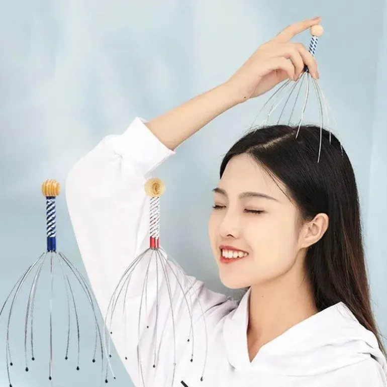 Fühlen Sie sich gestresst? Der entspannende Kopfhautmassager bietet sofortige Linderung. Dieses benutzerfreundliche Gerät stimuliert sanft Ihre Kopfhaut, fördert die Entspannung und löst Verspannungen. Mit seinen flexiblen Metallzinken und dem komfortablen Holzgriff bietet er eine wohltuende Massage, die Stress abbaut. Ideal für schnellen Stressabbau nach einem langen Tag oder wann immer Sie einen Moment der Ruhe brauchen – dieser Massager ist Ihr perfekter Begleiter.