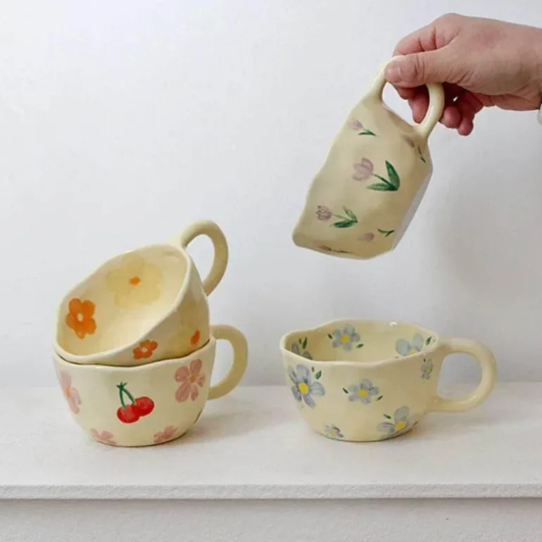 Wir präsentieren eine wunderschön gefertigte Keramiktasse im koreanischen Design: die handgekniffene unregelmäßige Blumentasse. Sie ist ideal für alle, die die Schönheit der Schlichtheit schätzen. Die Tasse aus hochwertiger Keramik zeichnet sich durch ihre markante Griffform aus, die sie von herkömmlichen Tassen unterscheidet.