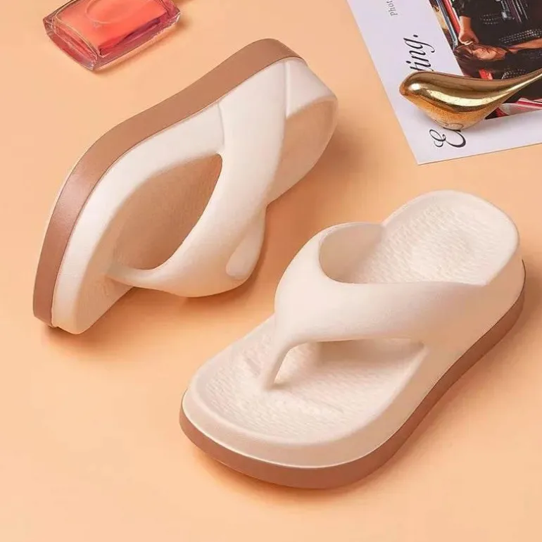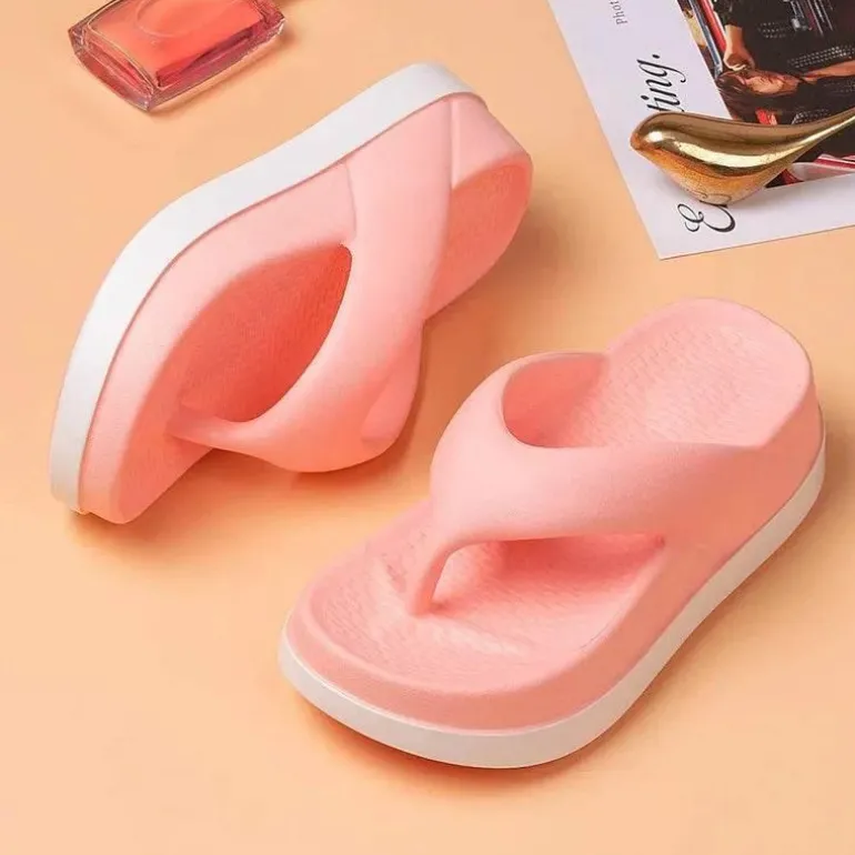 Genießen Sie Komfort und Stil mit unseren koreanischen Sommer-Hausschuhen mit dicker Sohle. Diese modischen Flip-Flops eignen sich sowohl für drinnen als auch draußen und sorgen dafür, dass Sie überall gut aussehen. Die 5 cm dicke Sohle sorgt nicht nur für ein dezentes Plus an Höhe, sondern bietet auch eine hervorragende Dämpfung – perfekt für lange Strandspaziergänge, gemütliche Stadtbummel oder einfach zum Entspannen zu Hause. Die hochwertigen Materialien dieser Sandalen garantieren dauerhaften Komfort ohne Kompromisse beim Stil.