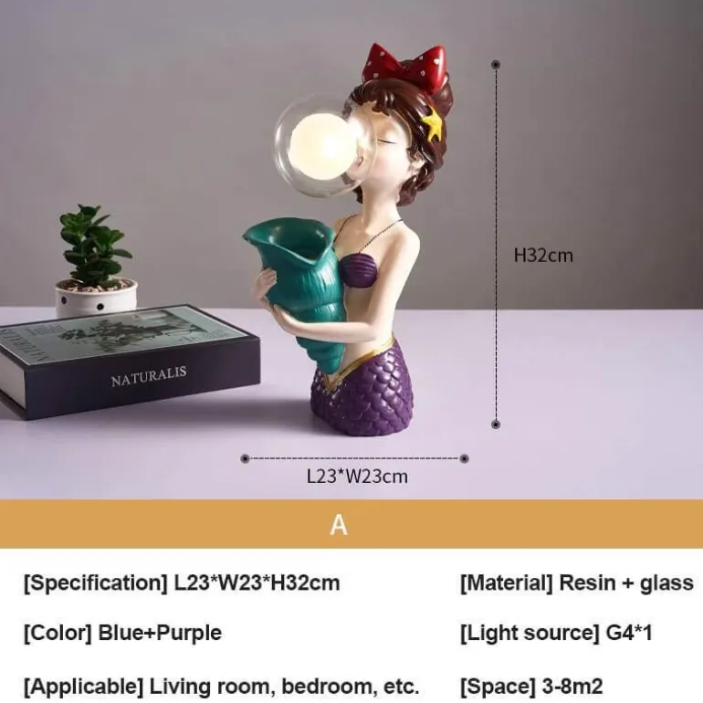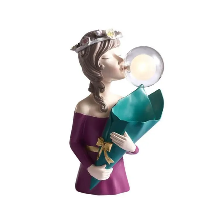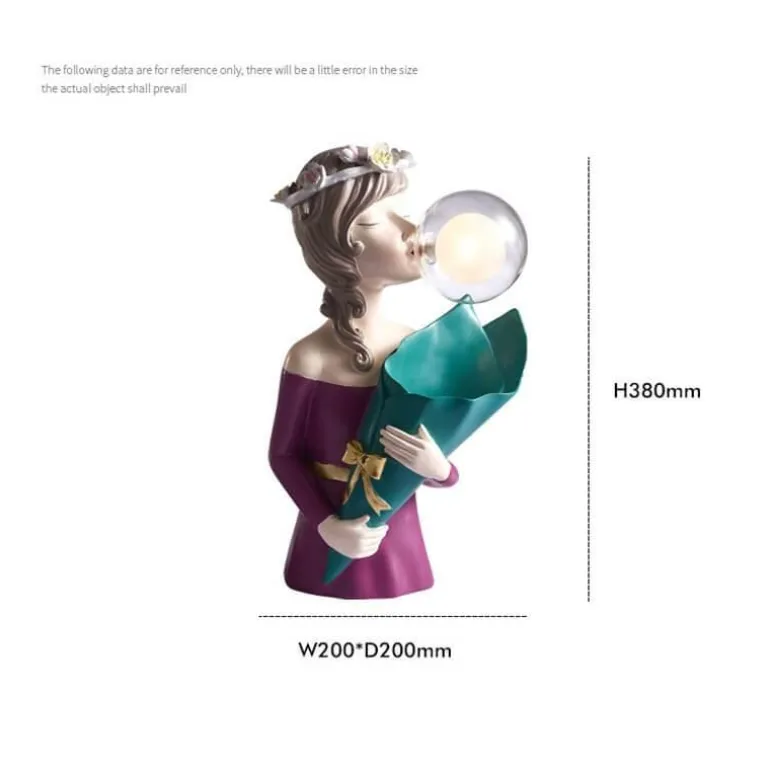 Diese Lampe aus robustem Harz und elegantem Glas vereint Funktionalität und künstlerischen Reiz. Mit den Maßen 20 cm x 20 cm x 38 cm (Bubble Girl) und 25 cm x 25 cm x 25 cm (Eichhörnchen) ist sie eine attraktive Ergänzung für Nachttische oder als Akzentstück in jedem Raum.
