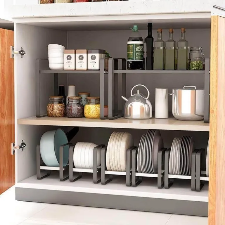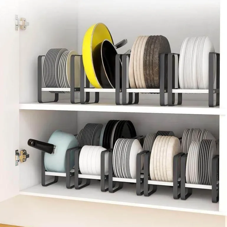 Dieser Organizer bietet viel Platz und hält Teller und Schüsseln sicher und sorgt für eine aufgeräumte Küche. Die rutschfesten Silikonpads am Boden sorgen für Stabilität und verhindern ungewolltes Verrutschen während des Gebrauchs.