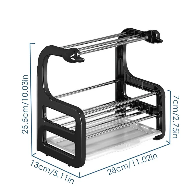 Die herausnehmbare Auffangwanne fängt Wasser effektiv auf und verhindert so, dass Bürsten, Lappen und Schwämme unschöne Flecken auf Ihren Arbeitsflächen hinterlassen. Außerdem trägt sie dazu bei, eine hygienische Umgebung in Ihrer Küche aufrechtzuerhalten.