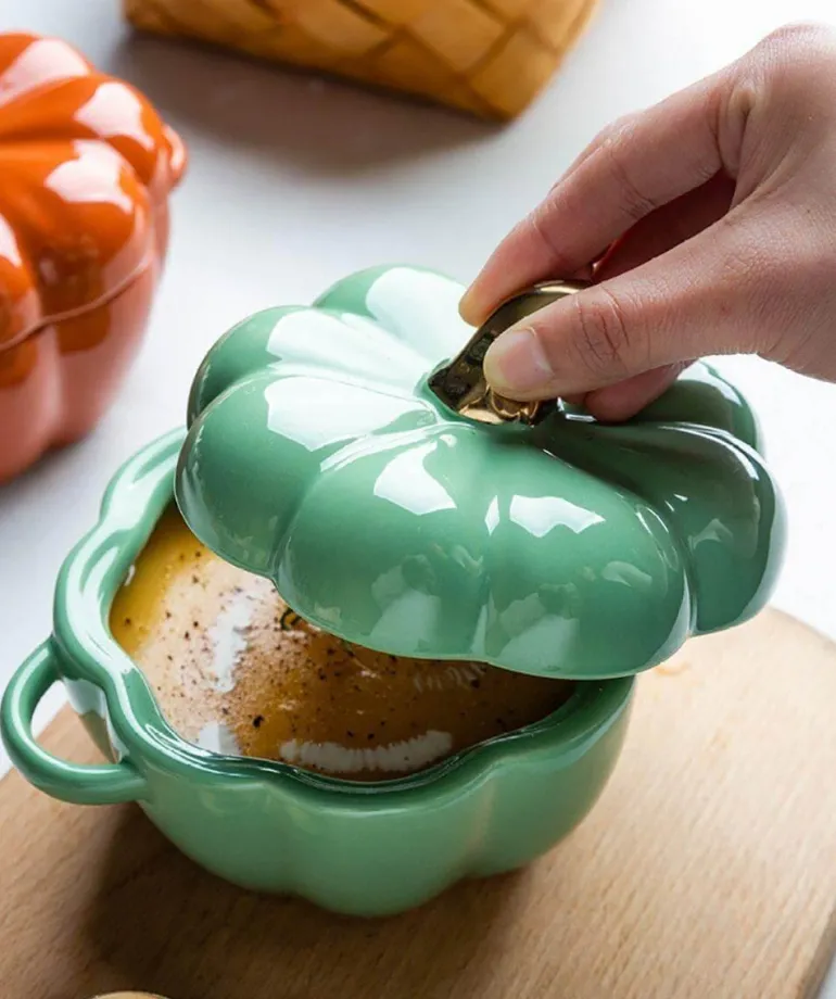 Entdecken Sie die praktische und praktische Funktion dieser charmanten Backschüssel in Kürbisform, die perfekt zu Ihrer herbstlichen Küchendekoration passt. Die aus hochwertiger Keramik gefertigte Schüssel besticht nicht nur durch ihr stilvolles Design, sondern eignet sich auch ideal zum Servieren direkt bei Ihren Zusammenkünften und Feiern.