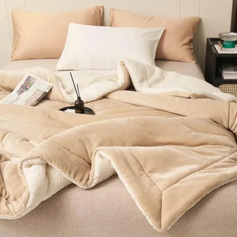 Wir präsentieren die Marion Decke, Ihre neue kuschelige Lieblingsdecke für mehr Entspannung. Diese Decke besteht auf einer Seite aus ultraweichem Polyester und auf der anderen aus plüschigem Lammwoll-Imitat und bietet so luxuriösen Komfort und bemerkenswerte Weichheit. Die dicke Konstruktion sorgt für optimale Wärme und macht sie zum idealen Begleiter für kühle Nächte und gemütliche Winterkuscheln.