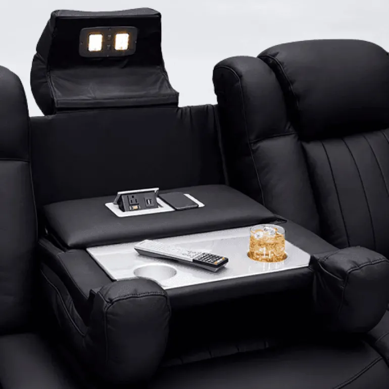 Experience the perfect blend of comfort and style with our luxurious leather electric power reclining cinema sofa. Crafted with genuine leather upholstery, this sofa invites you to sink in and indulge while enjoying your favorite films. The easy-to-use electric power reclining mechanism allows you to effortlessly find your ideal viewing angle, providing a customized experience every time.