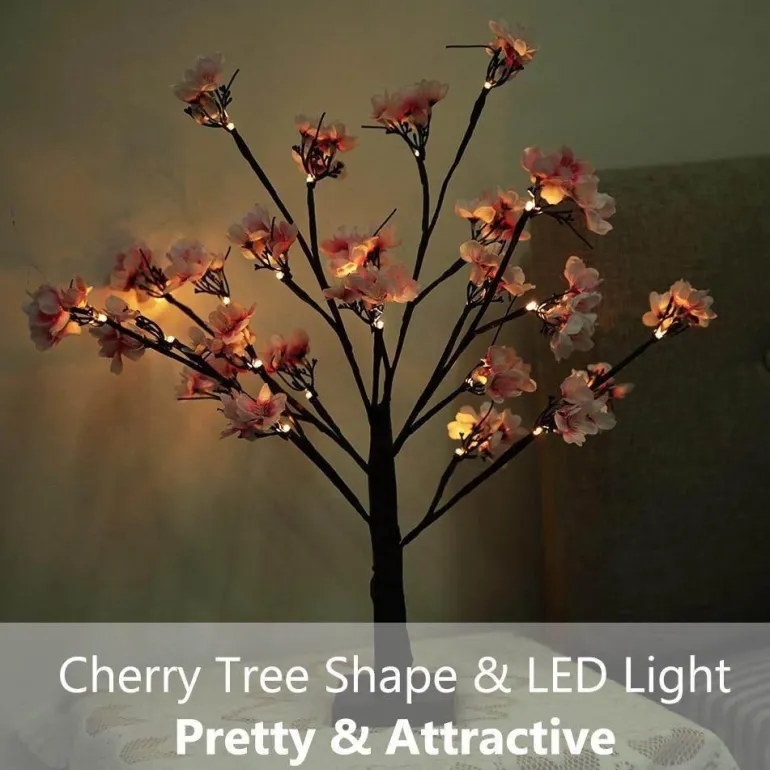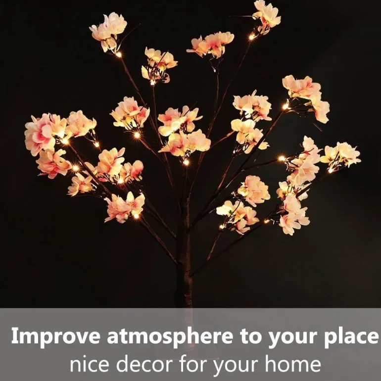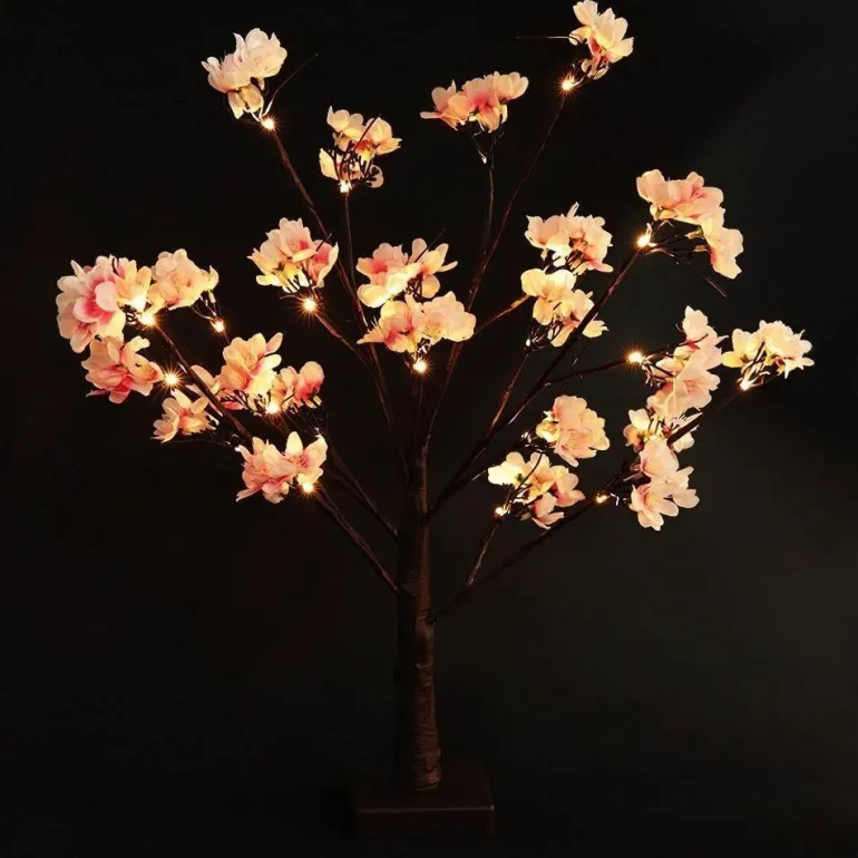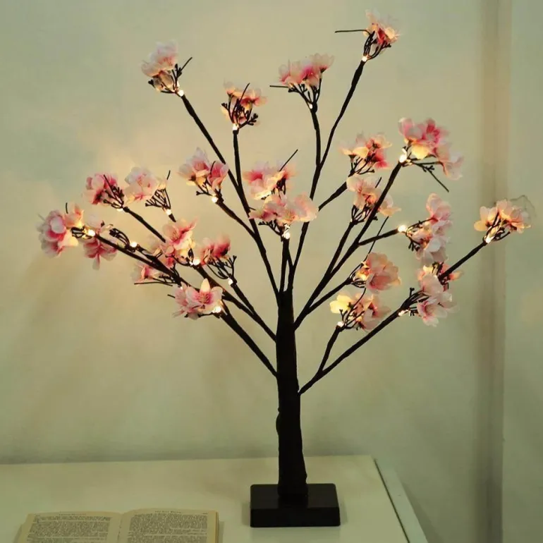 Equipped with premium LED bulbs that emit a soft and gentle glow, this lamp brightens your space while remaining easy on the eyes. The combination of classic black branches and soft pink blossoms establishes a serene atmosphere ideal for unwinding and relaxation.