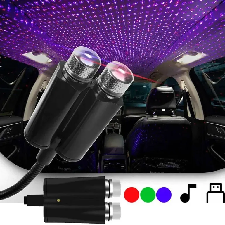 In der Box finden Sie ein farbenfrohes, durch Ton aktiviertes LED-Projektor-Nachtlicht, das Ihre Umgebung in einen magischen Himmel voller Farben verwandelt.