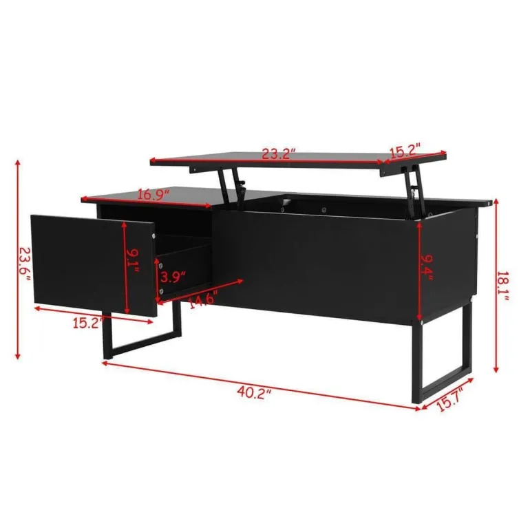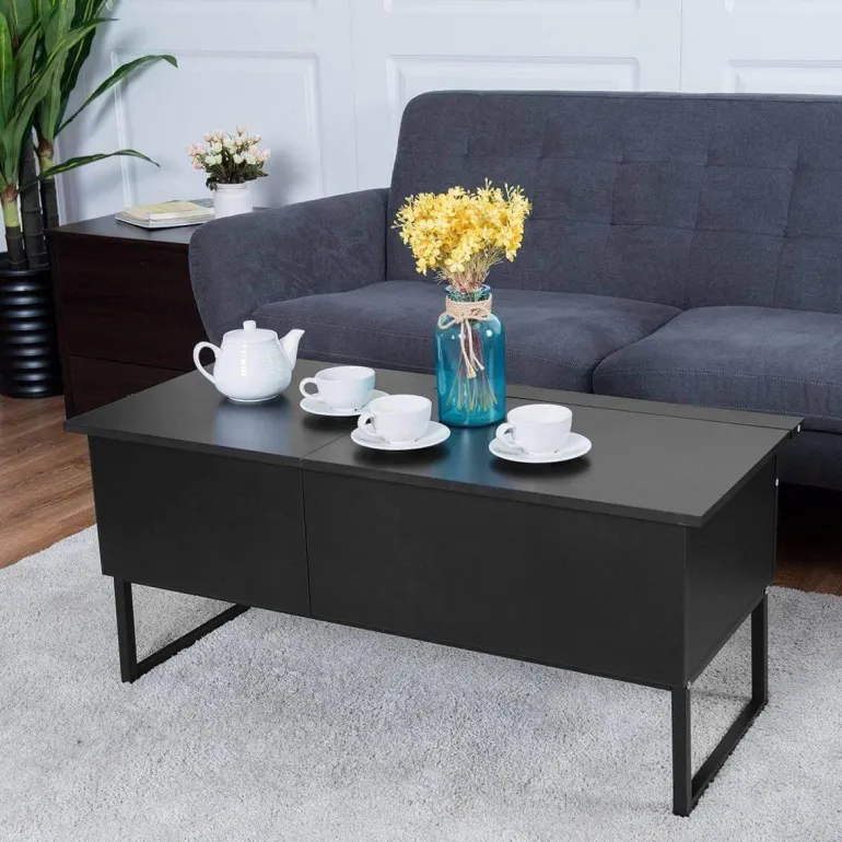 Wir präsentieren unseren modernen Couchtisch aus schwarzem Holz mit anhebbarer Platte. Sein durchdachtes Design vereint Funktionalität mit eleganter, zeitgenössischer Ästhetik. Dieser vielseitige Tisch verfügt über einen höhenverstellbaren Mechanismus, mit dem Sie die Oberfläche mühelos zum Arbeiten, Lesen oder Genießen Ihres Lieblingsgetränks anpassen können. Unter der glatten Tischplatte verbirgt sich versteckter Stauraum, der viel Platz bietet, um Ihren Wohnbereich organisiert und aufgeräumt zu halten.