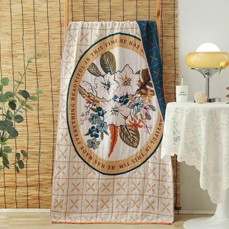 Mit ihrer eleganten rechteckigen Form und dem aufwendigen Blumenmuster verleihen diese Handtücher Ihrem Badezimmer eine raffinierte Note. Genießen Sie den Luxus unserer Baumwollbadetücher, die flauschige Weichheit mit der Funktionalität schnelltrocknenden Materials vereinen und perfekt auf Ihre täglichen Bedürfnisse zugeschnitten sind. Verschönern Sie Ihr Badeerlebnis mit diesen funktionalen und zugleich stilvollen Handtüchern, die den Anforderungen des Alltags gerecht werden. Entdecken Sie praktische Wohnlösungen bei Decor.