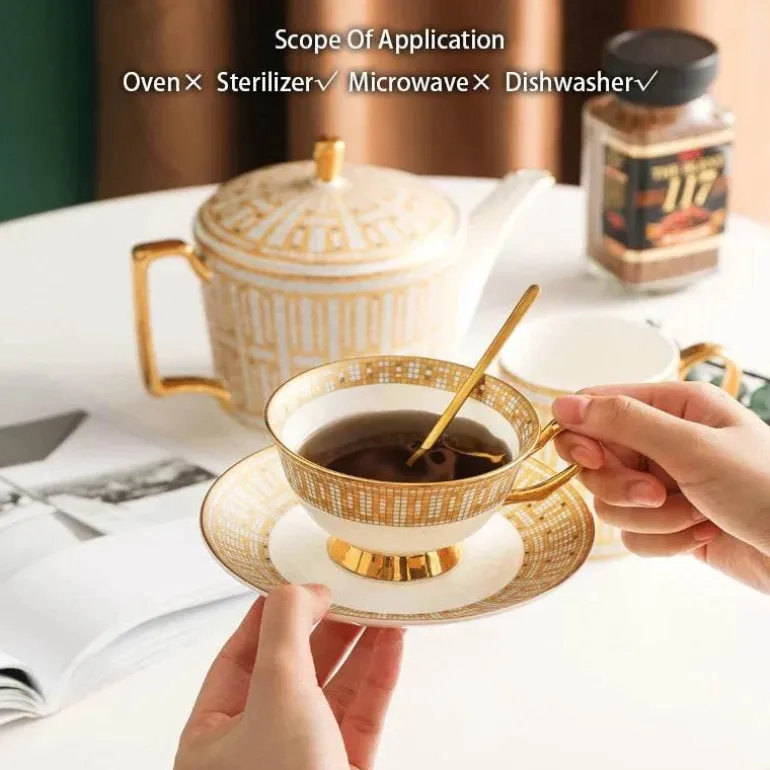 Dieses luxuriöse Teeservice aus Bone China ist mehr als nur funktionales Trinkgeschirr, sondern auch ein wunderschönes Kunstwerk. Es ist ein ideales Geschenk für Ihre Lieben oder eine durchdachte Wahl für besondere Anlässe, bei denen Qualität eine wichtige Rolle spielt. Mit seinem klassischen Design und der handwerklichen Meisterleistung wird dieses Teeservice für viele Jahre zu einem wertvollen Bestandteil Ihres Zuhauses.