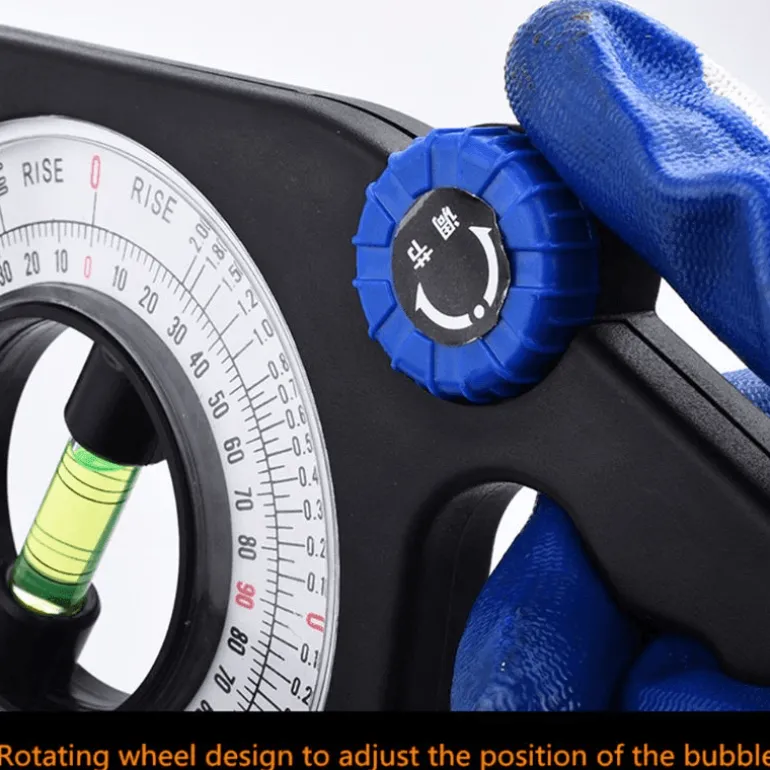 Der multifunktionale Winkel- und Neigungsmesser verfügt über einen ergonomischen Griff für komfortables Halten und einfache Bedienung. Dank der übersichtlichen Vergleichstabelle für Neigungs- und Winkelmessungen ermöglicht dieses Gerät ein müheloses Ablesen der Skalen und eignet sich ideal für Neigungsmessungen und Neigungseinstellungen.