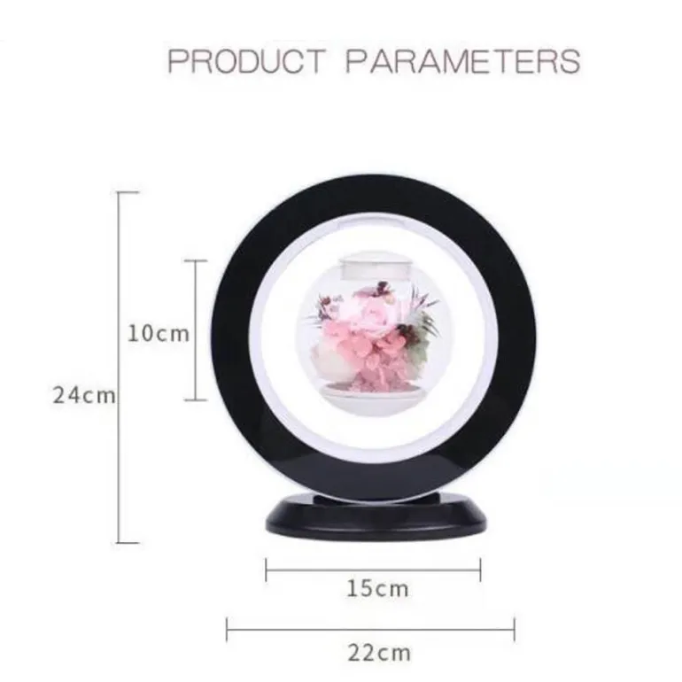 Entdecken Sie die bezaubernde Magnetschwebe-Blumenlampe, die Ihren Raum mit einer atemberaubenden schwebenden Blume verschönert. Dank modernster Magnettechnologie schwebt diese innovative Lampe eine sorgfältig gefertigte Blume und schafft so einen faszinierenden Blickfang. Das integrierte LED-Licht strahlt ein warmes Licht aus, sodass Sie die Schönheit der Lampe Tag und Nacht bewundern können. Dieses unverwechselbare Dekorationsstück verleiht jedem Raum einen Hauch von Magie und wertet die Atmosphäre Ihres Zuhauses mühelos mit einer harmonischen Mischung aus Kunstfertigkeit und moderner Technologie auf.