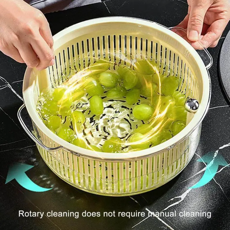 Mit diesem manuellen Gemüseabtropfkorb gehören matschigen Salaten und nassem Gemüse der Vergangenheit an. Dieses unverzichtbare Küchenwerkzeug ist benutzerfreundlich und effizient und entfernt überschüssiges Wasser effektiv von Ihrem frisch gewaschenen Obst und Gemüse. Drehen Sie einfach den Griff und lassen Sie die Zentrifugalkraft ihre Wirkung entfalten. So bleiben Ihre Salate knackig und servierbereit. Das praktische Design macht die Zubereitung einfacher und angenehmer und ist eine wertvolle Ergänzung für Ihre kulinarische Routine.