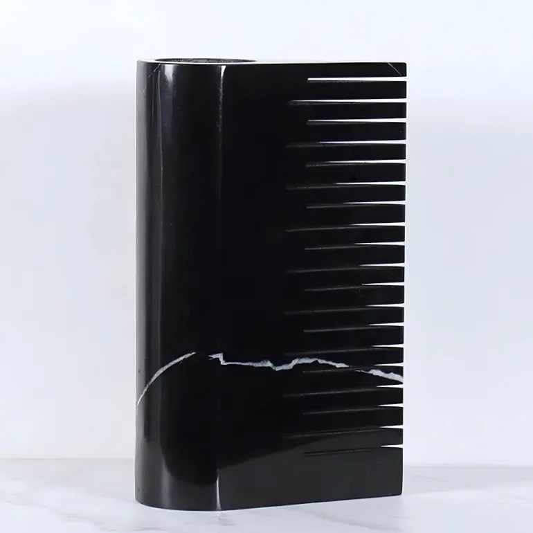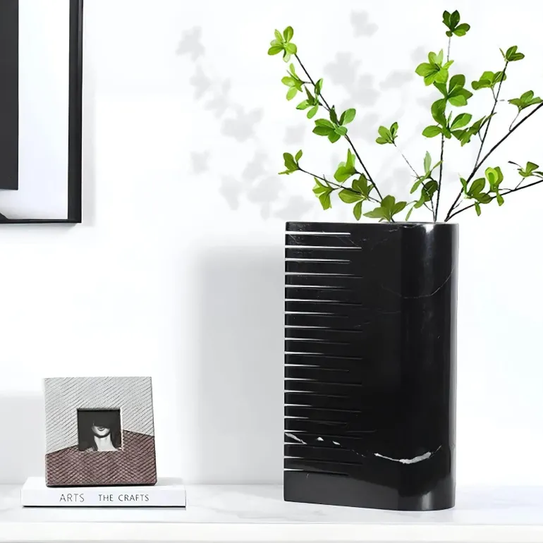 Ob allein oder mit atemberaubenden Blumenarrangements – diese Marmorvase verleiht Ihrem Wohnraum einen Hauch von Erhabenheit und Prestige. Ihr vielseitiges Design ergänzt verschiedene Einrichtungsstile und fügt sich nahtlos ein, ohne dabei zu vernachlässigen. Dieses Stück unterstreicht nicht nur Ihre Ästhetik, sondern dient auch als praktische Lösung, um Ihre Lieblingsblumen oder Dekorationselemente in Szene zu setzen.
