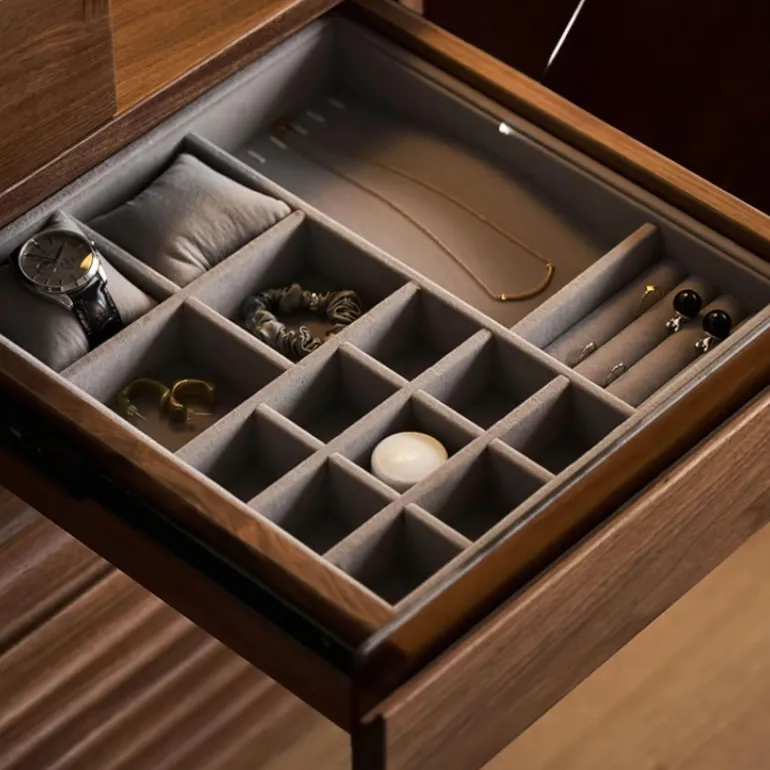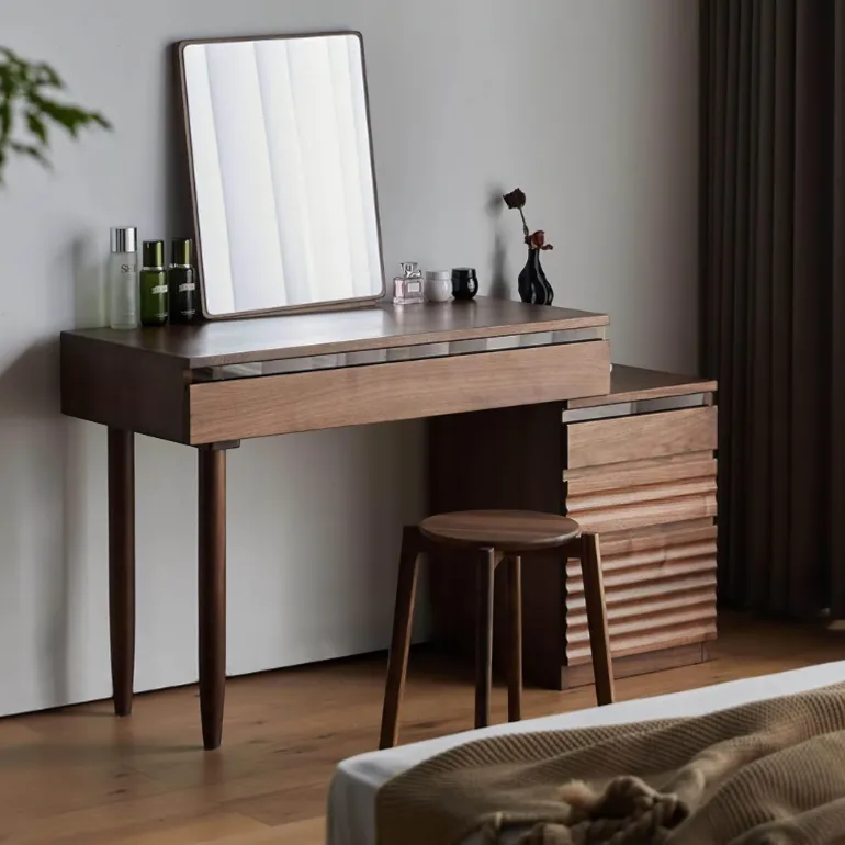 Verschönern Sie Ihr Schlafzimmer oder Ankleidezimmer mit diesem eleganten Schminktisch, der sowohl stilvoll als auch funktional ist. Der aus hochwertigem Holz gefertigte Schminktisch besticht durch seine edle Ästhetik und verleiht jedem Raum Eleganz. Ein besonderes Merkmal ist der austauschbare Schrank, der es Ihnen ermöglicht, den Schminktisch für Links- oder Rechtshänder individuell zu gestalten und so optimalen Komfort für Ihre Bedürfnisse zu bieten.