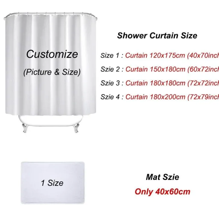 Dieser vielseitige Vorhang ist in mehreren Größen erhältlich – 120 x 175 cm, 180 x 200 cm, 180 x 180 cm und 150 x 180 cm – und eignet sich perfekt für jedes Badezimmer, jede Dusche oder sogar für den Einsatz in Hotels.