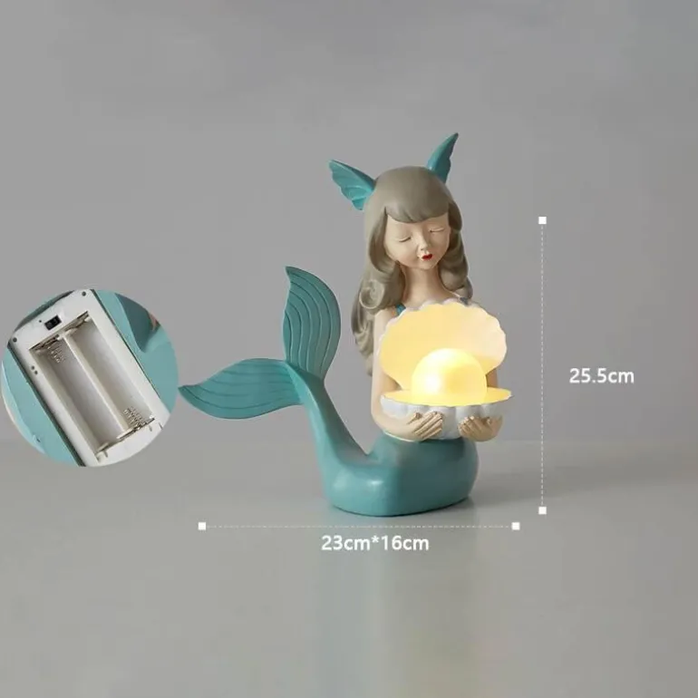 Verwandeln Sie das Zimmer Ihres Kindes mit unserem bezaubernden Meerjungfrauen-Nachtlicht – eine ideale Kombination aus ästhetischem Charme und praktischer Funktionalität für die Kinderzimmerdekoration. Diese Lampe aus hochwertigem Harz besticht durch sanfte Kurven und ein lebendiges Finish, das jeden Raum erhellt. Ihr skurriles Design verleiht der Einrichtung nicht nur eine verspielte Note, sondern strahlt auch sanftes Licht aus und schafft so eine beruhigende Atmosphäre, perfekt zum Schlafengehen oder für fantasievolles Spielen.