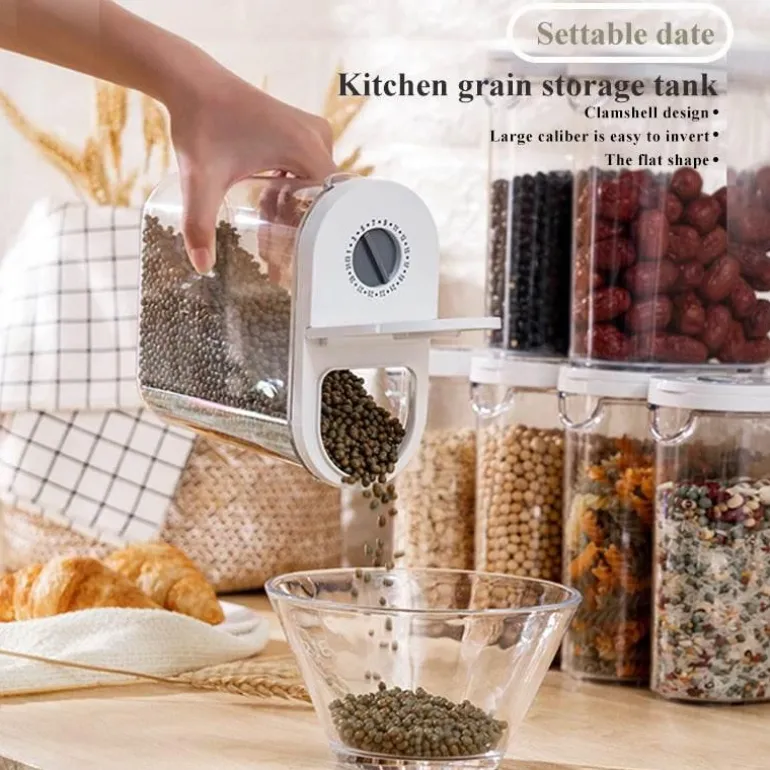 Verbessern Sie Ihre Küchenorganisation mit diesem Mehrkorn-Vorratsbehälter, der den Bedürfnissen jeder Familie gerecht wird. Das schlanke und moderne Design verfügt über einen praktischen Drehknopf, mit dem Sie Monat und Datum einstellen können. So vergessen Sie nicht, Ihre gelagerten Lebensmittel für optimale Frische zu drehen. Hergestellt aus BPA-freiem Kunststoff, schützt dieser Behälter die Qualität Ihrer Zutaten und verhindert gleichzeitig Auslaufen.