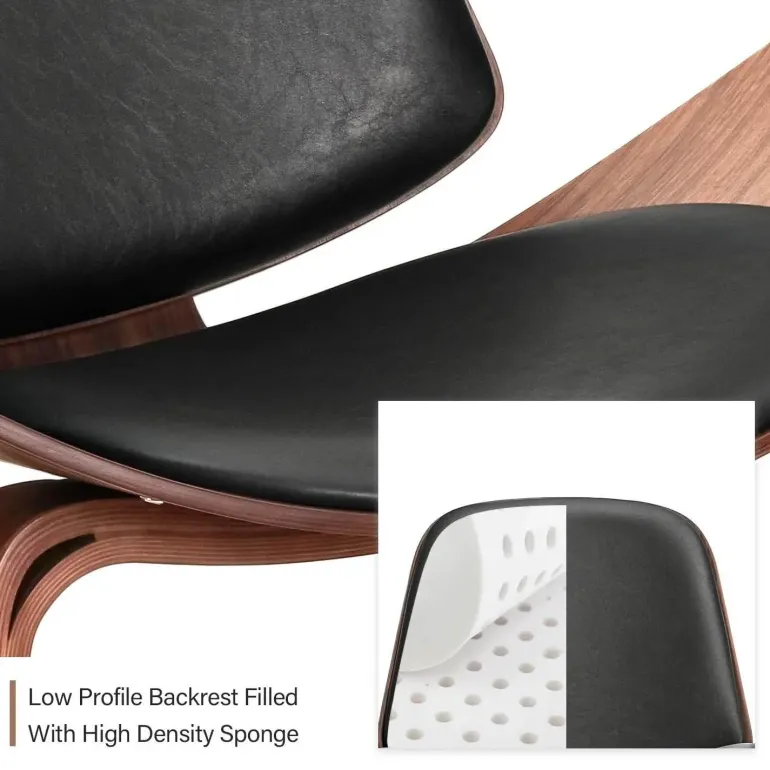 Der Stuhl besticht durch seine markante Schalenform und ist elegant mit schwarzem PU-Leder bezogen. Er verleiht jedem Raum eine elegante Note. Ob im Schlafzimmer, Esszimmer oder Wohnzimmer – er ist eine vielseitige und stilvolle Sitzgelegenheit für Erwachsene.