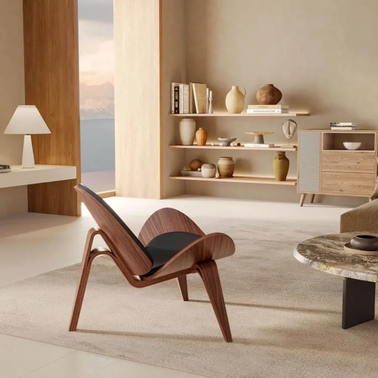 Werten Sie Ihren Wohnbereich mit dem Mid Century Replica Shell Chair auf und genießen Sie eine harmonische Mischung aus Stil und Komfort.