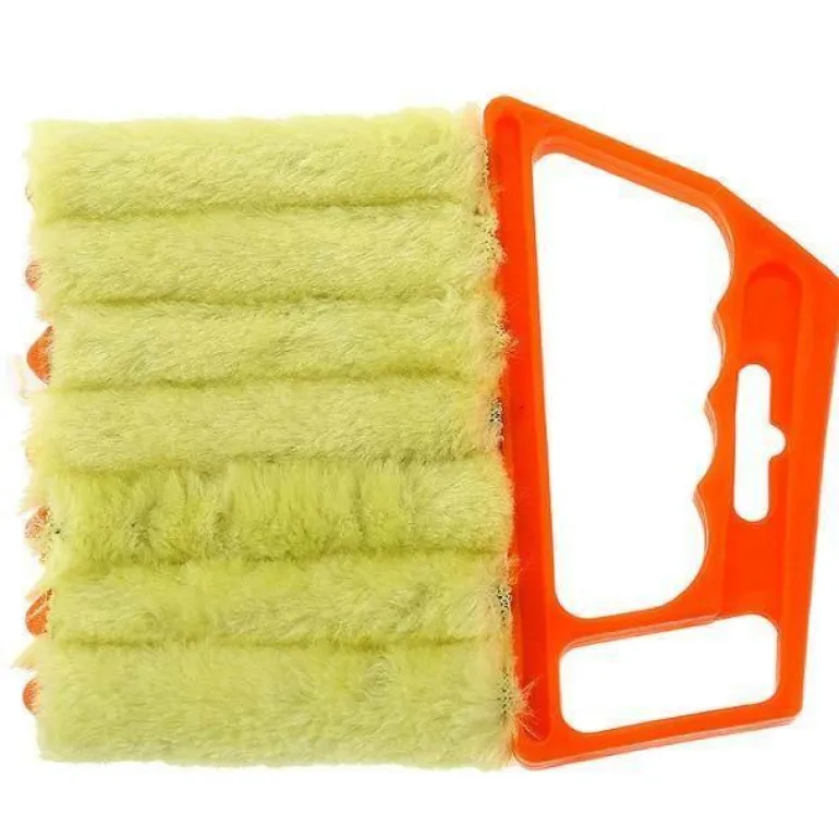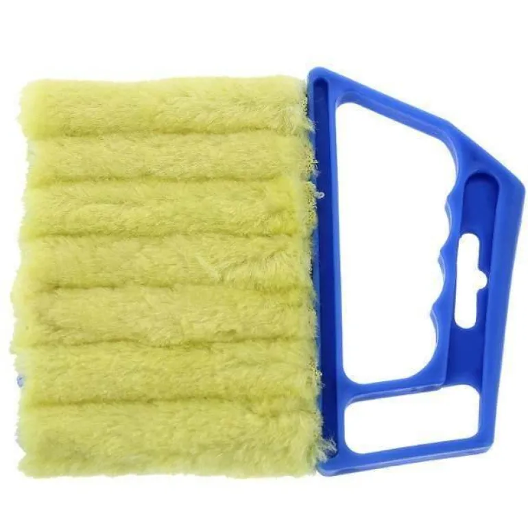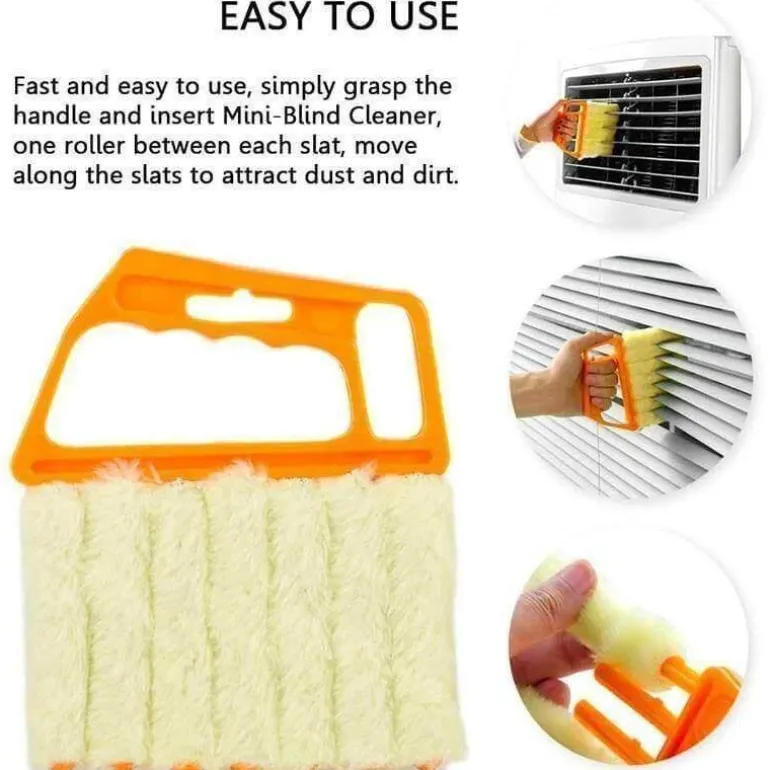 Der Griff der Bürste liegt sicher in der Hand und ermöglicht ein müheloses Manövrieren zwischen den Lamellen. Führen Sie den Mini-Jalousienreiniger zwischen jede Lamelle ein und gleiten Sie entlang, um Staub und Schmutz effektiv zu entfernen.
