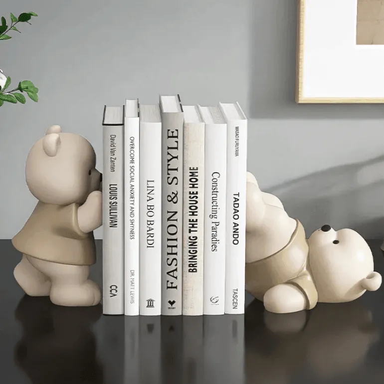 Verleihen Sie dem Kinderzimmer mit unseren handgefertigten Bären-Buchstützen einen Hauch von Charme. Sie verschönern jedes Regal und bieten gleichzeitig praktischen Halt für Ihre Lieblingsbücher. Mit ihrer weichen, matten, neutralen Oberfläche fügen sich diese robusten Buchstützen in Bärenform nahtlos in verschiedene Einrichtungsstile ein und sind der perfekte Akzent für Ihr Wohnzimmer, Schlafzimmer oder Arbeitszimmer.