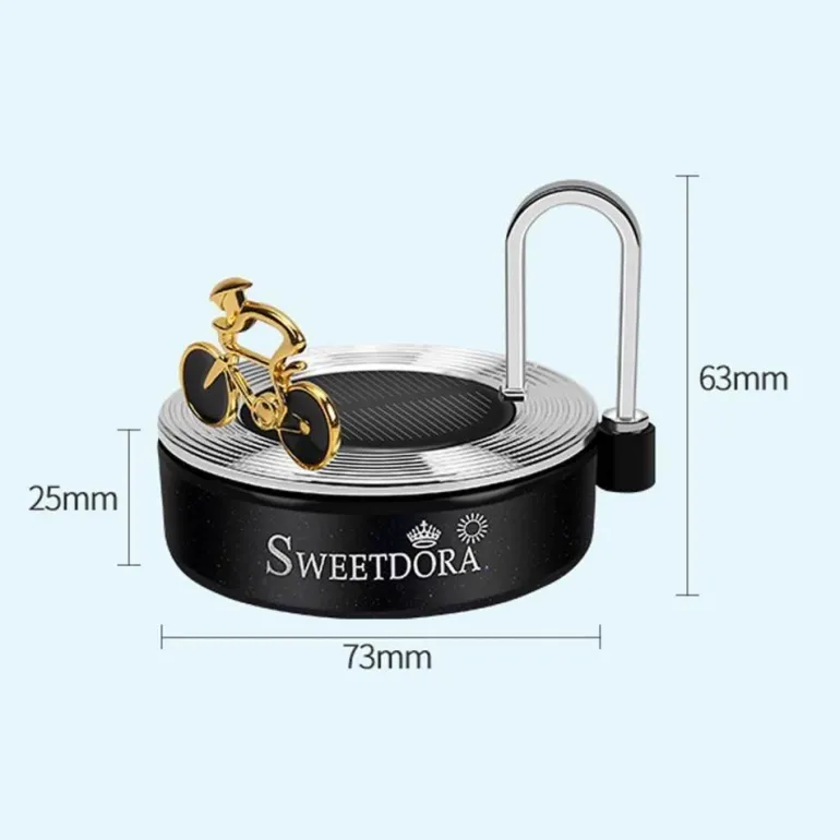 Verschönern Sie Ihren Wohn- oder Fahrbereich mit dem Mini-Solarfahrrad-Aromatherapie-Dekor – eine perfekte Kombination aus Stil und Funktionalität. Dieses charmante, umweltfreundliche Stück dient nicht nur als auffällige Dekoration für Ihr Auto oder Zuhause, sondern auch als praktischer Aromatherapie-Diffusor, der Ihre Umgebung mit Ihren Lieblingsdüften erfüllt und für eine erfrischende Atmosphäre sorgt.