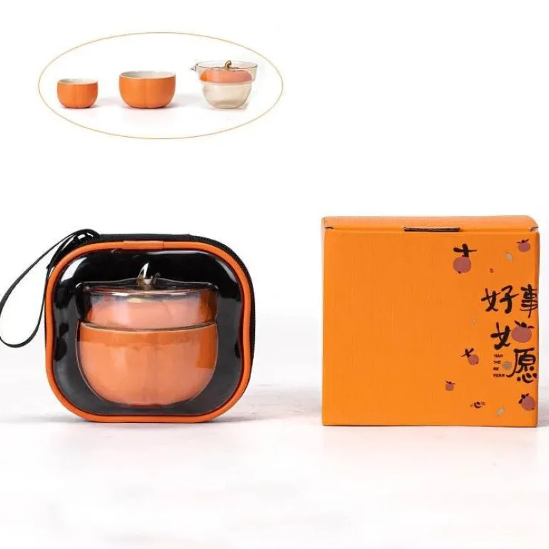 – 1x Mini-Kürbis-Teekannen-Set aus Keramik