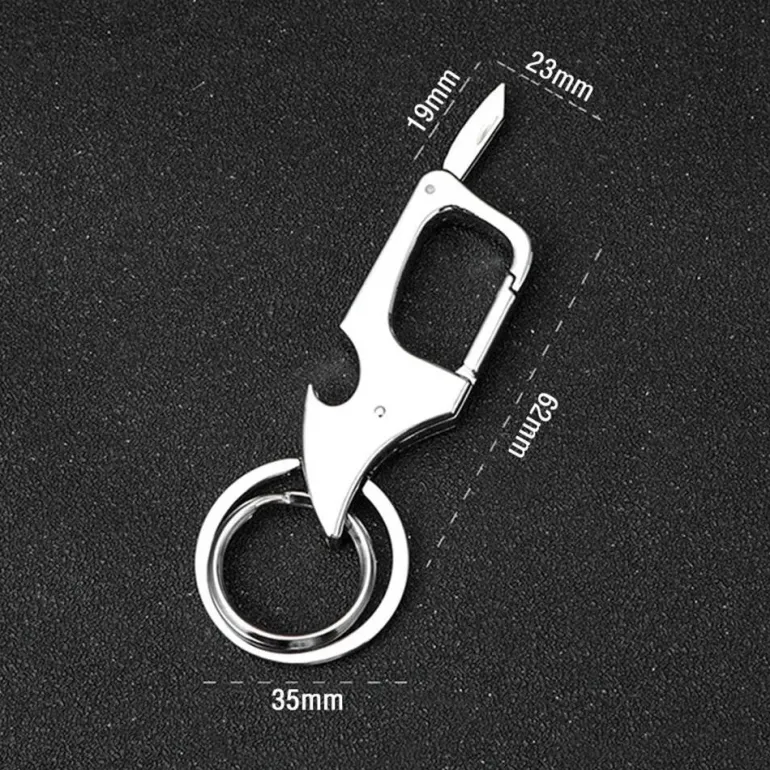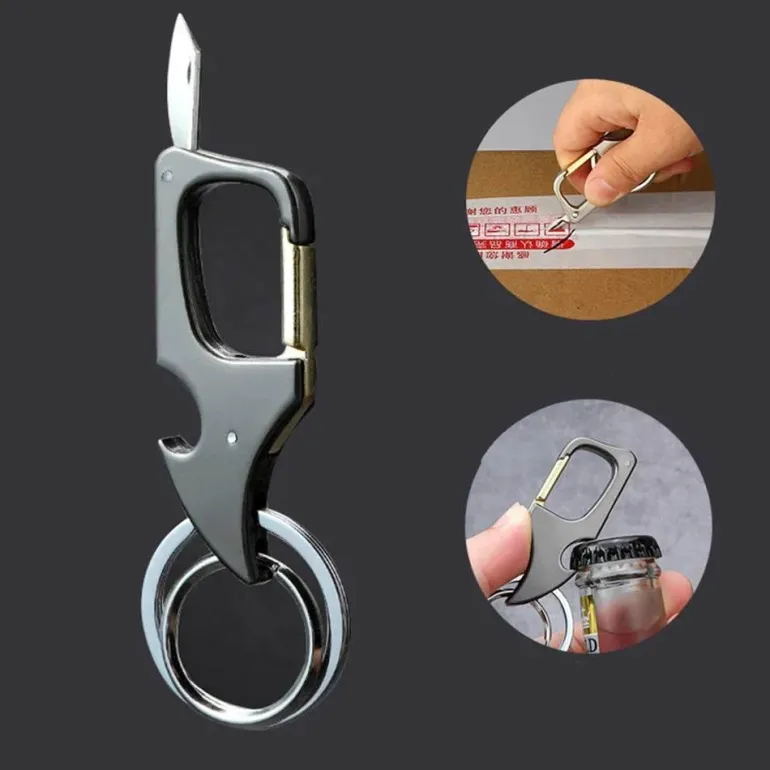 - Doppelte Funktionalität : Kombiniert drei wichtige Werkzeuge – Messer, Flaschenöffner und Schlüsselanhänger – in einem Design für mehr Benutzerfreundlichkeit.