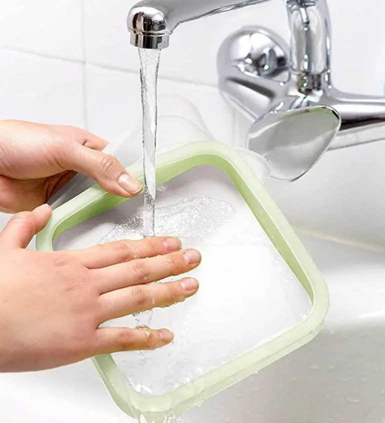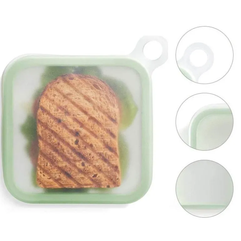 Genießen Sie Ihre Lieblingssandwiches unterwegs mit unserer umweltfreundlichen, wiederverwendbaren Sandwichbox. Diese praktische Lunchbox aus lebensmittelechtem Silikon ist luftdicht verschlossen und sorgt dafür, dass Ihr Sandwich den ganzen Tag über frisch und lecker bleibt.