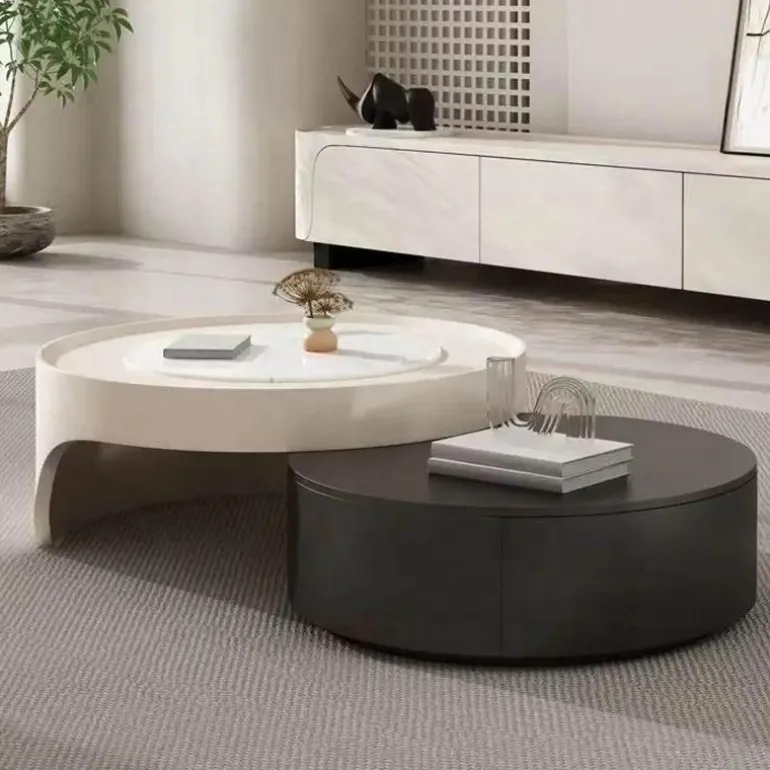 Experience the ideal blend of functionality and contemporary style with this dual-tier coffee table, designed to be a focal point in any modern setting. Featuring an innovative retractable lounge design, the unique circular top extends smoothly to reveal an additional tier underneath, offering added convenience when you need it. This coffee table is perfect for those who value modern aesthetics alongside efficient space management, providing a versatile surface area while maintaining a sleek, compact form when not in use.