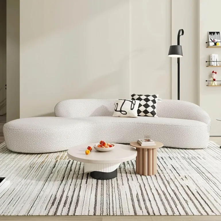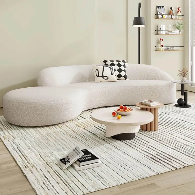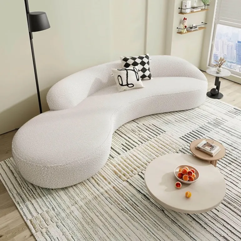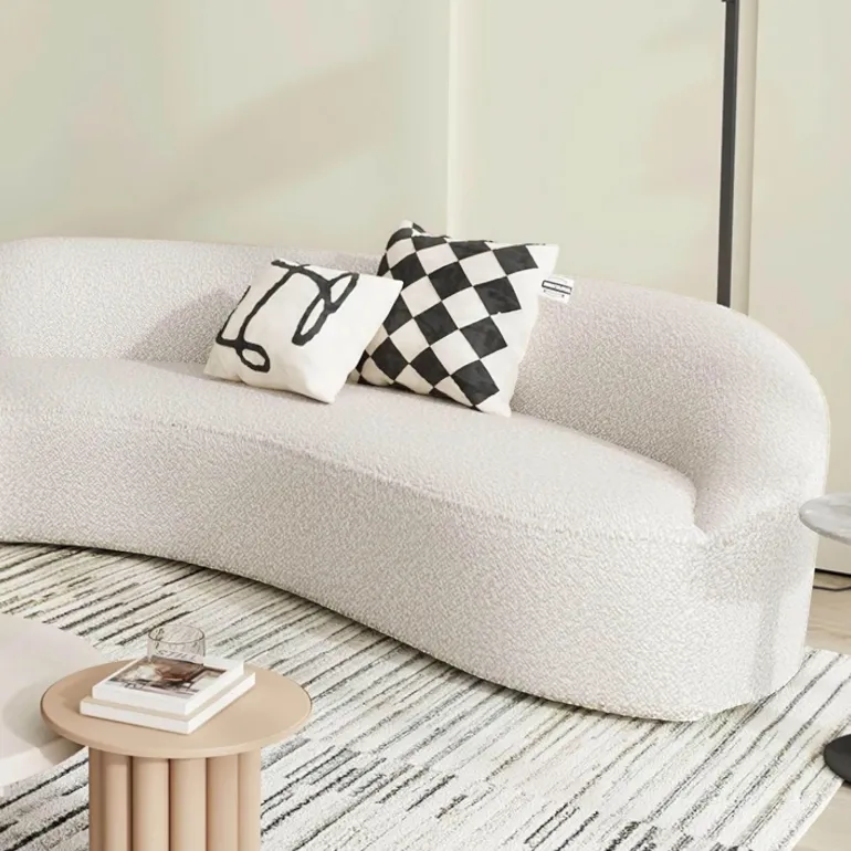 Discover the Modern Marina Sofa, an expertly crafted piece that combines premium bouclé fabric with an elegant, curved design. This comfortable couch not only adds sophistication to your living space but also serves as a captivating centerpiece for your home. Experience the inviting plushness of its cushions, designed to cradle you as you relax after a long day. The Marina Sofa embodies a refined aesthetic and timeless charm, elevating your home decor with its stylish presence. For further details on specifications or available color options, please inquire today.
