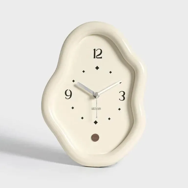 Erleben Sie den Lauf der Zeit mit dieser modernen Wanduhr, die Funktionalität und Ästhetik kunstvoll vereint. Die Uhr besticht durch ihr wellenförmiges Design, das durch die glänzende Creme-Oberfläche perfekt ergänzt wird und sich nahtlos in verschiedene Einrichtungsstile einfügt. Ihr markanter, dicker Rahmen mit organischer Form macht sie zu einem praktischen Zeitmesser und Blickfang in jedem Raum. Dieses vielseitige Akzentstück bereichert perfekt das Ambiente von Schreibtischen, Wohnbereichen oder Schlafzimmern und fügt sich mühelos in Ihr Zuhause ein, während es ihm einen Hauch von Eleganz verleiht. Genießen Sie diese praktische und stilvolle Lösung für Ihre Wohnkultur. Entdecken Sie mehr bei Decor .
