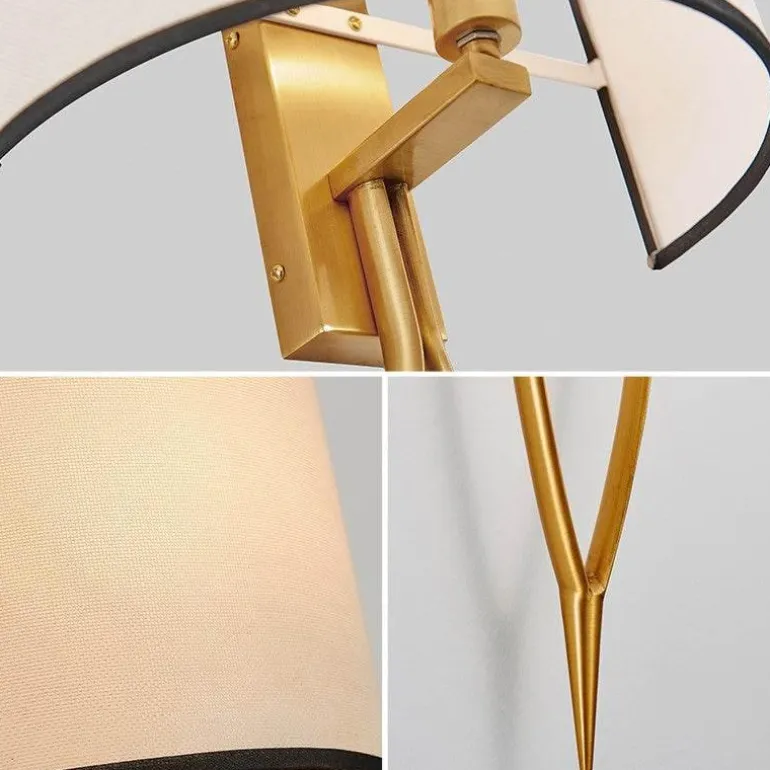 Entdecken Sie die moderne Wandleuchte Brodway, die klassische Eleganz mit modernem Design verbindet. Das polierte Messing-Finish unterstreicht die schlanken, abgeschrägten Formen der Leuchte und bildet eine harmonische Verbindung mit dem cremefarbenen Schirm. Diese Kombination verleiht eine raffinierte Ästhetik, die den Charme von Schlafzimmern im Vintage-Stil unterstreicht.