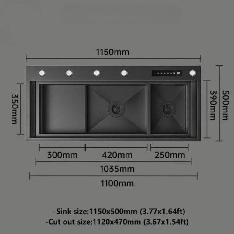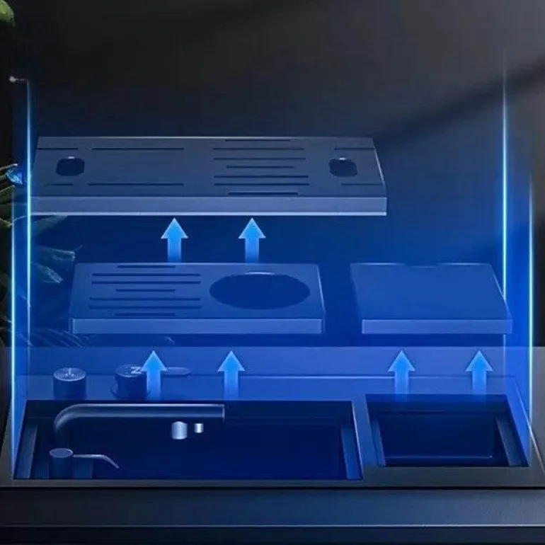 Verwandeln Sie Ihre Küche mit dieser modernen Wasserstationsspüle, die Funktionalität und modernes Design perfekt vereint. Mit ihren schlichten, minimalistischen Linien bietet diese Küchenspüle ein geräumiges Becken, das sich perfekt für eine Vielzahl von Aktivitäten eignet – vom Geschirrspülen und Vorbereiten von Zutaten bis zum Aufräumen nach dem Essen.