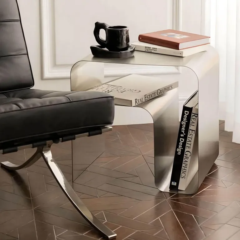 Entdecken Sie die perfekte Verbindung von Stil und Funktionalität mit diesem modernen Beistelltisch aus edlem Edelstahl. Sein modernes Design verleiht jedem Wohnraum Eleganz und nordischen Charme. Dieser vielseitige Beistelltisch bietet eine großzügige Ablagefläche, die sich ideal zum Ordnen von Büchern, Zeitschriften und anderen wichtigen Dingen eignet und für ein aufgeräumtes Ambiente sorgt. Ob im Wohnzimmer, Schlafzimmer oder Büro – dieses Möbelstück wertet Ihre Einrichtung auf und bietet gleichzeitig praktische Aufbewahrungsmöglichkeiten, ohne auf Ästhetik zu verzichten. Erleben Sie die nahtlose Verbindung von Schönheit und Funktionalität in dieser unverzichtbaren Ergänzung Ihrer Einrichtung.