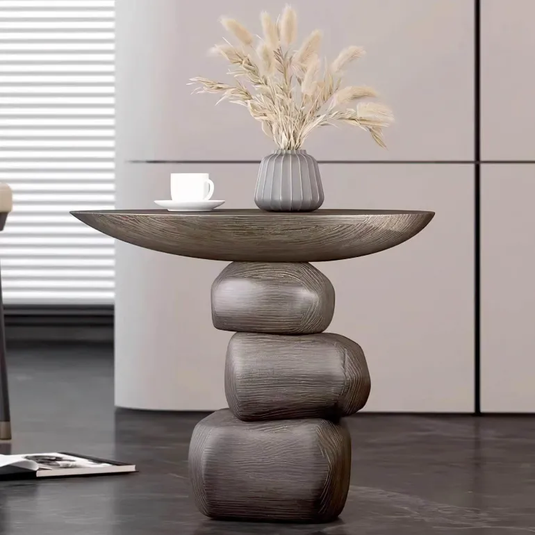 Entdecken Sie die perfekte Kombination aus natürlicher Schönheit und modernem Stil mit dem Beistelltisch Sabrina. Dieses Akzentstück wertet Ihr Wohnzimmer funktional auf und verleiht ihm gleichzeitig eine ästhetische Note. Gefertigt aus faserverstärktem ABS-Material imitiert der Tisch die raue Eleganz natürlicher Steinformationen und ist dank moderner Konstruktionstechniken gleichzeitig langlebig und erschwinglich. Die sorgfältig gestalteten Schichten erzeugen den Eindruck wunderschön gestapelter Steine und verleihen jedem Raum Tiefe und optische Attraktivität. Ideal zum Abstellen von Getränken oder zur Präsentation von Dekorationsgegenständen, fügt sich dieser vielseitige Tisch nahtlos in verschiedene Einrichtungsstile ein und verleiht Ihrem Zuhause einen Hauch natürlicher Eleganz. Entdecken Sie praktische Lösungen für Ihren Wohnraum bei Decor .