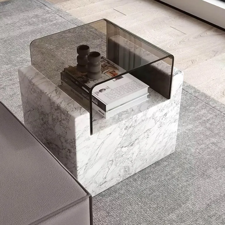 Verwandeln Sie Ihren Wohnraum mit diesem stilvollen Beistelltisch. Sein durchdachtes Design vereint zeitlose Eleganz mit moderner Funktionalität. Der sorgfältig gefertigte Tisch verfügt über einen eleganten Marmorsockel, der Luxus und Raffinesse ausstrahlt und jedem Raum einen Hauch von Raffinesse verleiht. Die erhöhte Glasplatte verleiht ihm ein modernes Flair und schafft einen markanten Kontrast, der Ihre Einrichtung aufwertet und Blicke auf sich zieht.