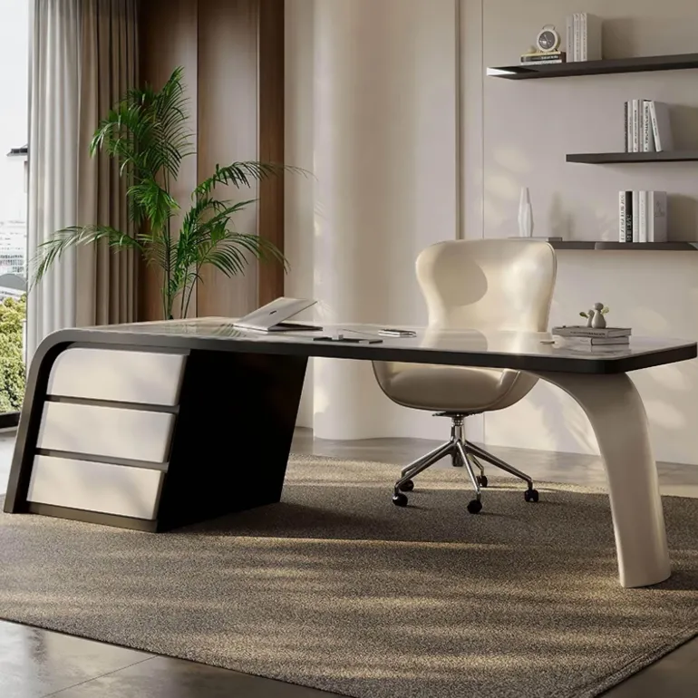 Der hochglänzend pulverbeschichtete Rahmen unterstreicht das moderne Design und schafft eine einladende Atmosphäre, die Ihre Büroeinrichtung aufwertet. Dieser Schreibtisch vereint Funktionalität und Eleganz und ist die ideale Wahl für alle, die ihre Arbeitsumgebung mit anspruchsvollem Stil aufwerten möchten.